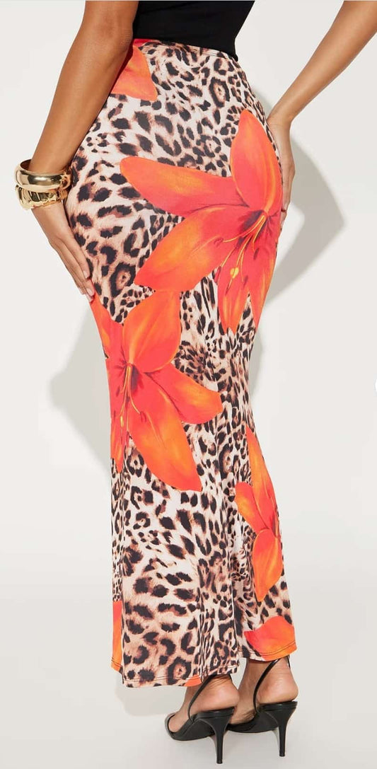Floral Leopard Print Skirt