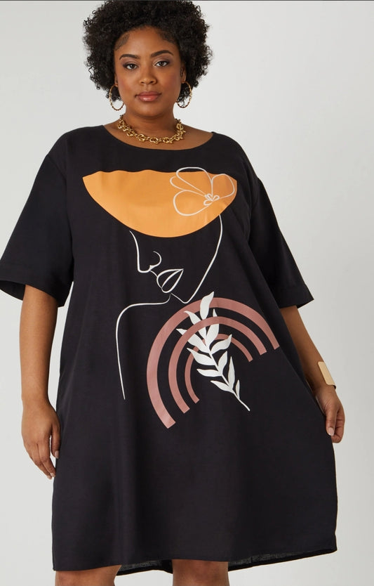 Lisa Plisse Shirt Dress- Faces Blk/White