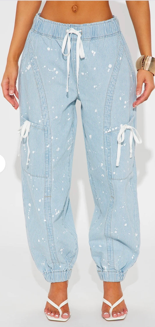 Verina Non-Stretch Stripe Denim Joggers